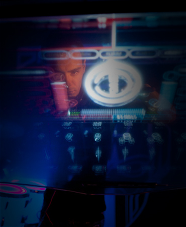 Utilising a one-of-a-kind 55'' transparent Holoscreen, accompanied by 13 light drums and cymbals, this state of the art, custom designed machine was built to rock dance floors around the world.